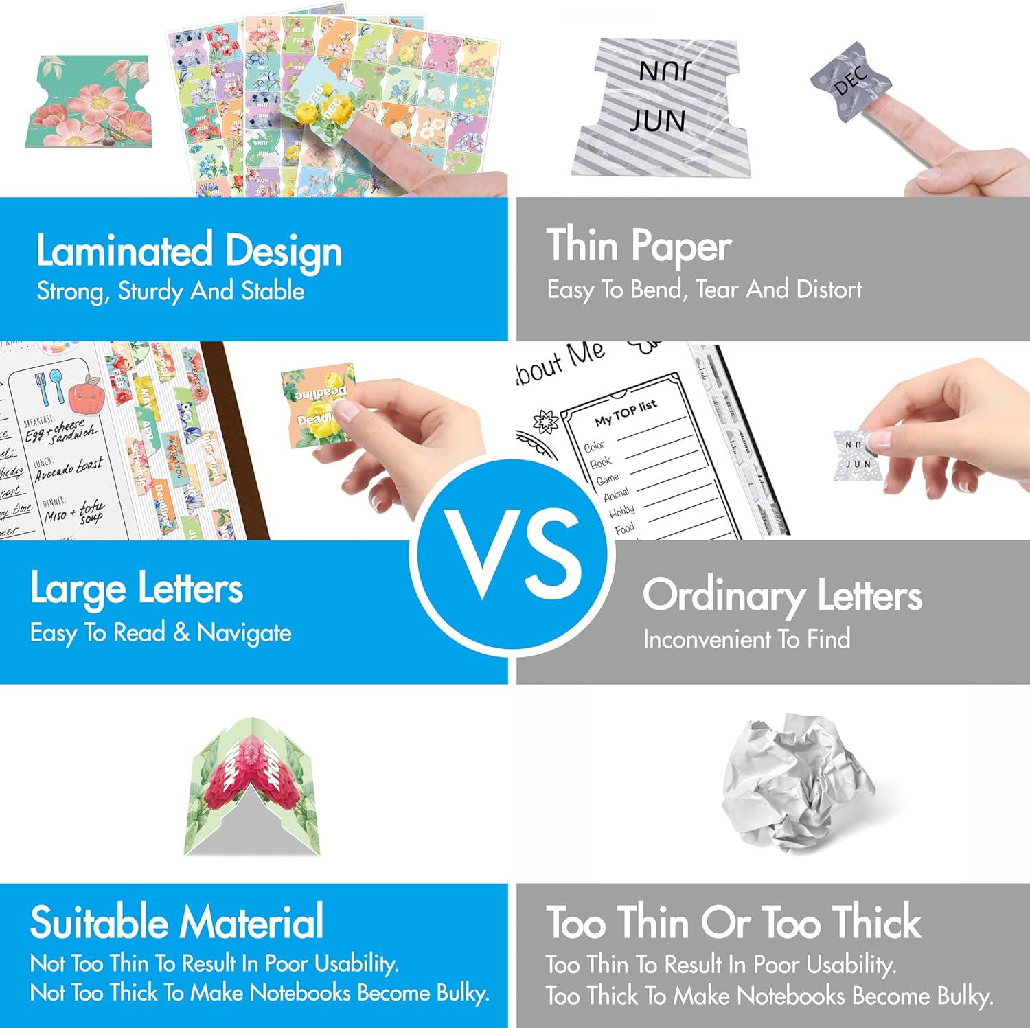Yes! Each tab is laminated for extra strength, making them tear-resistant, long-lasting, and perfect for daily use.