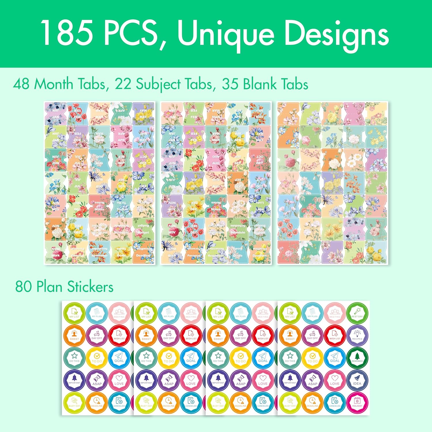 You’ll receive a complete set of 105 tabs, including pre-labeled and blank tabs for customization.