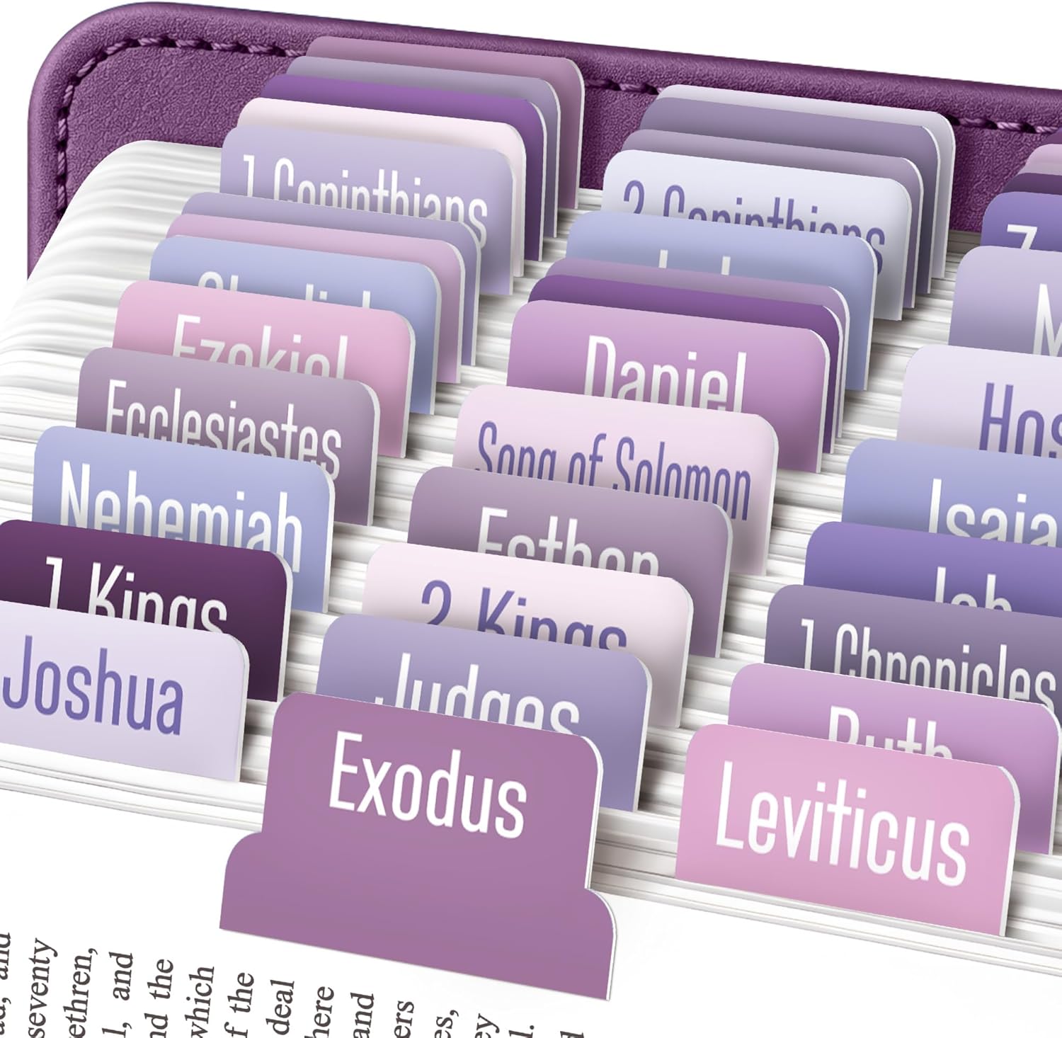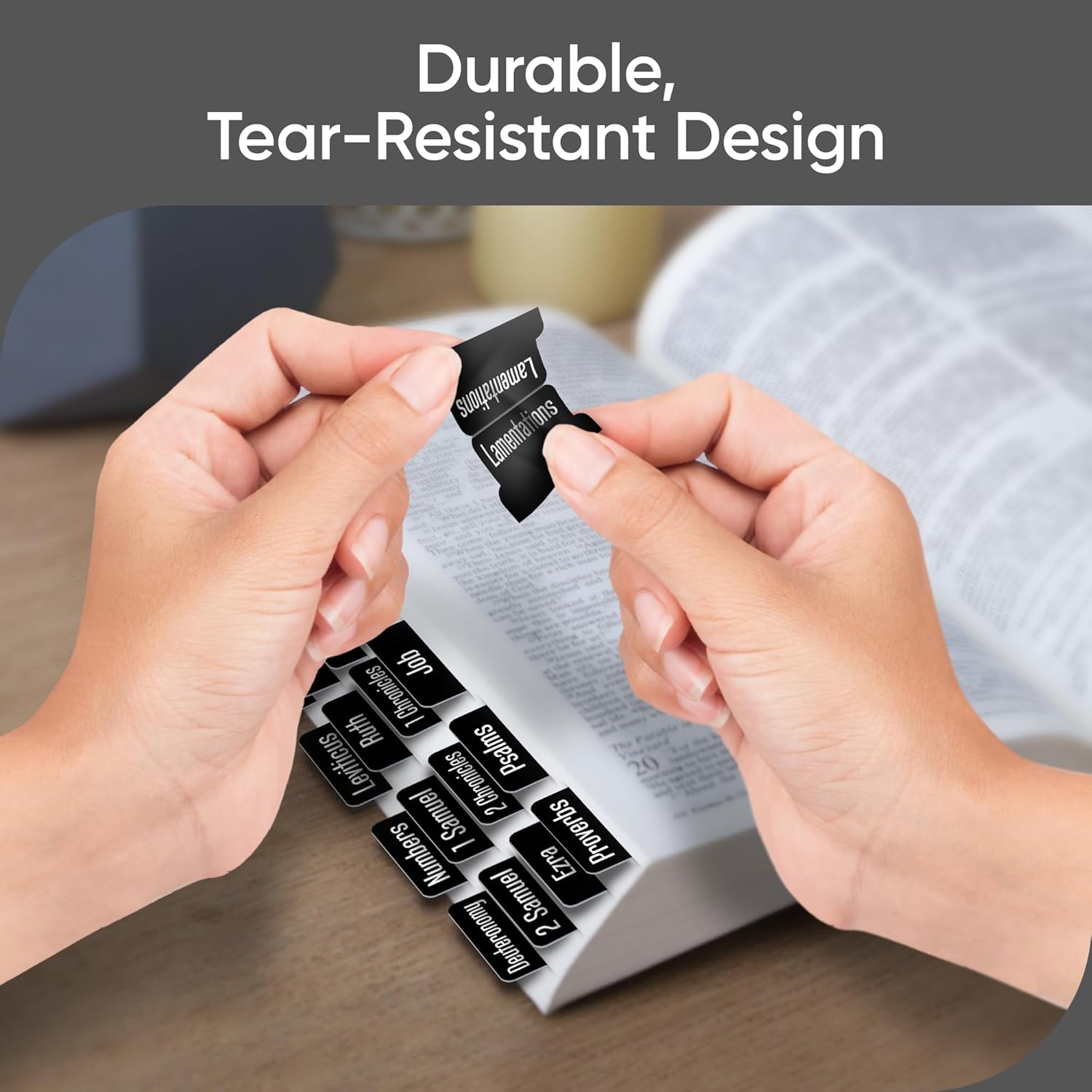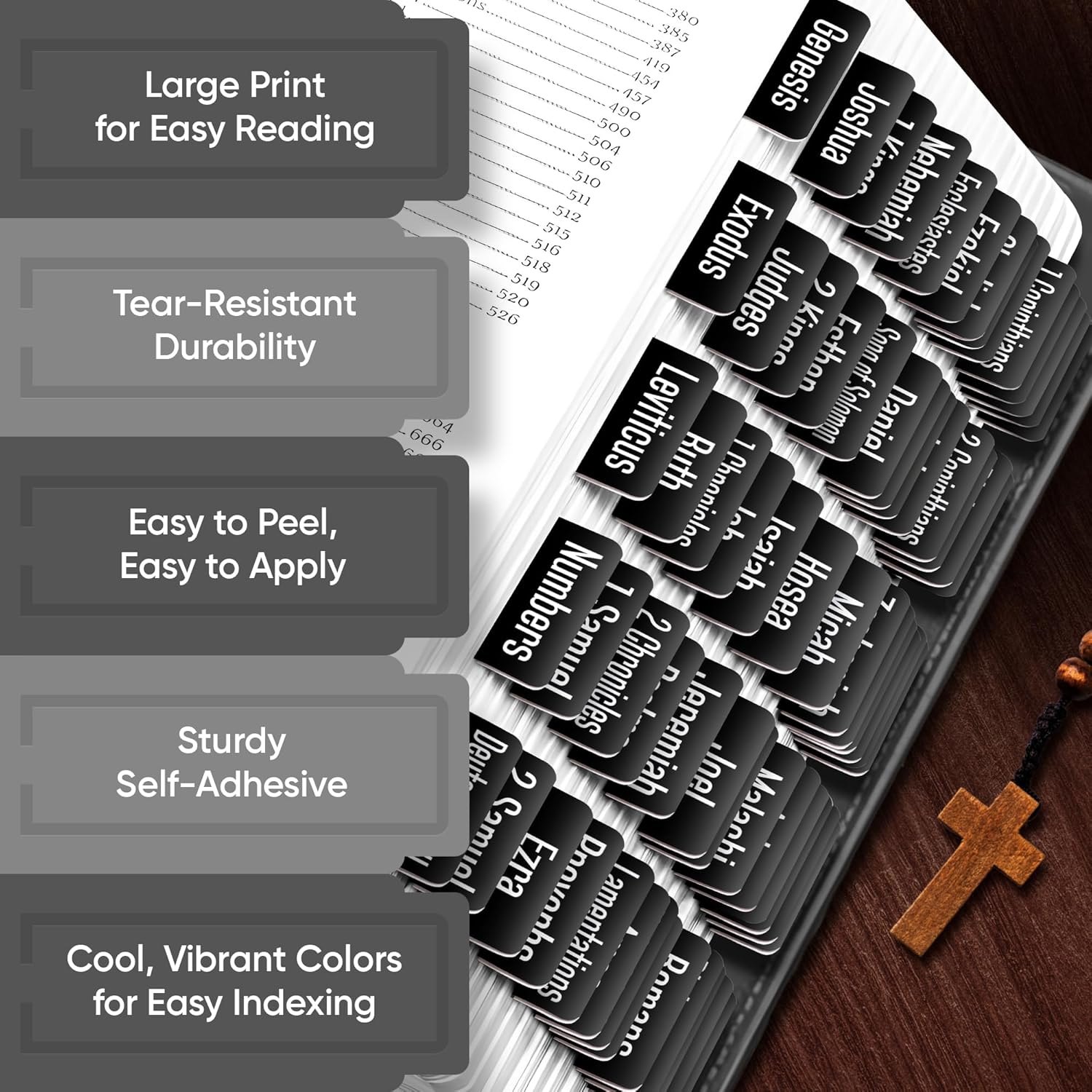 Organize your Bible effortlessly with 80 large print tabs for both Old and New Testament. Designed for durability and water resistance, these wide 1.7" tabs provide clear visibility and long-lasting use—perfect for daily study and devotion.