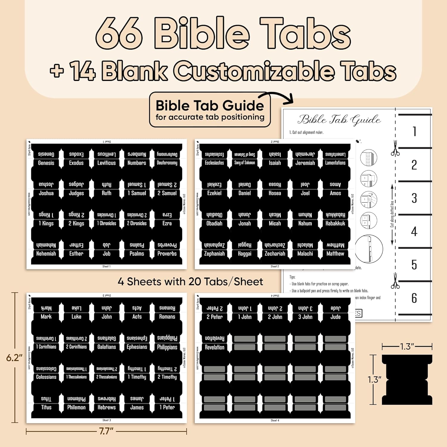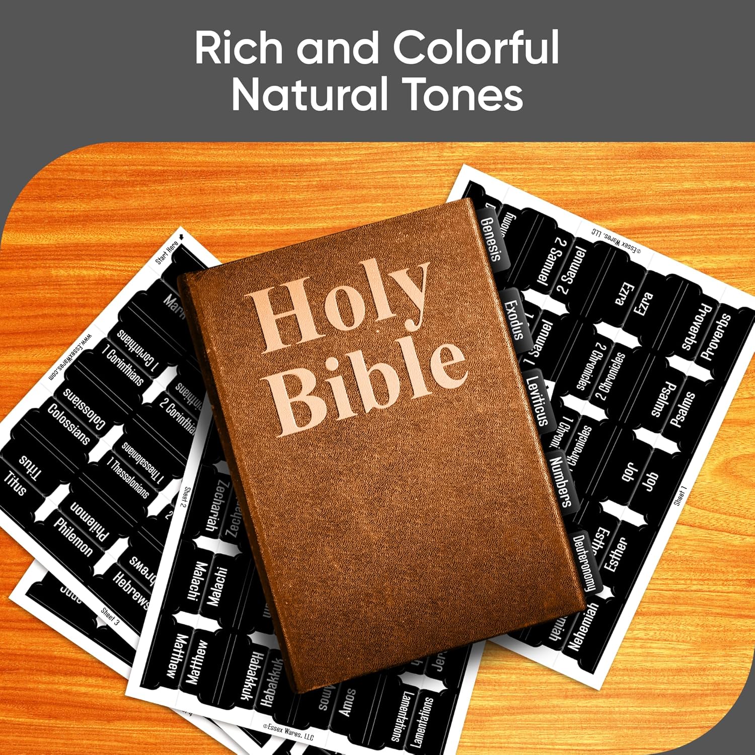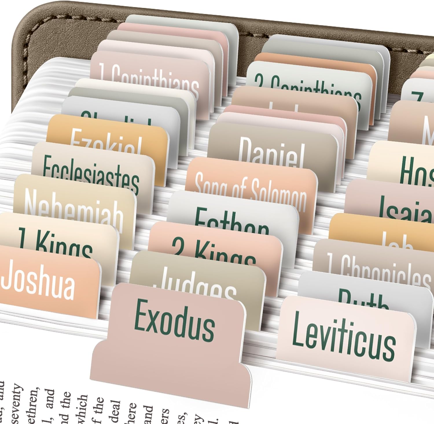 Organize your Bible effortlessly with 80 large print tabs for both Old and New Testament. Designed for durability and water resistance, these wide 1.7" tabs provide clear visibility and long-lasting use—perfect for daily study and devotion.
